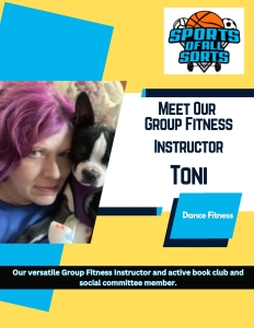Beyond fitness, Toni is an active and beloved part of our community, serving as a dedicated member of both our book club 📚 and social committee 🎉. Her warmth and enthusiasm inspire others, whether she’s leading a class or sharing her latest book recommendation. We’re lucky to have Toni on our team, helping us stay active and connected! 💪💙