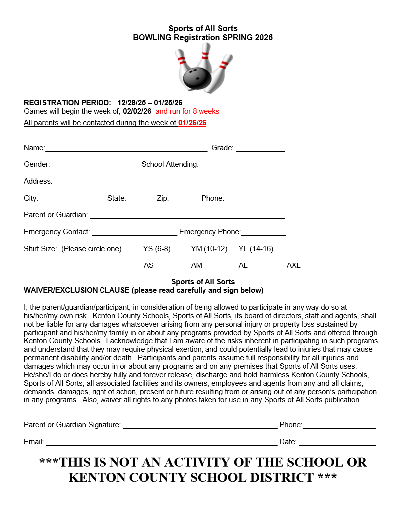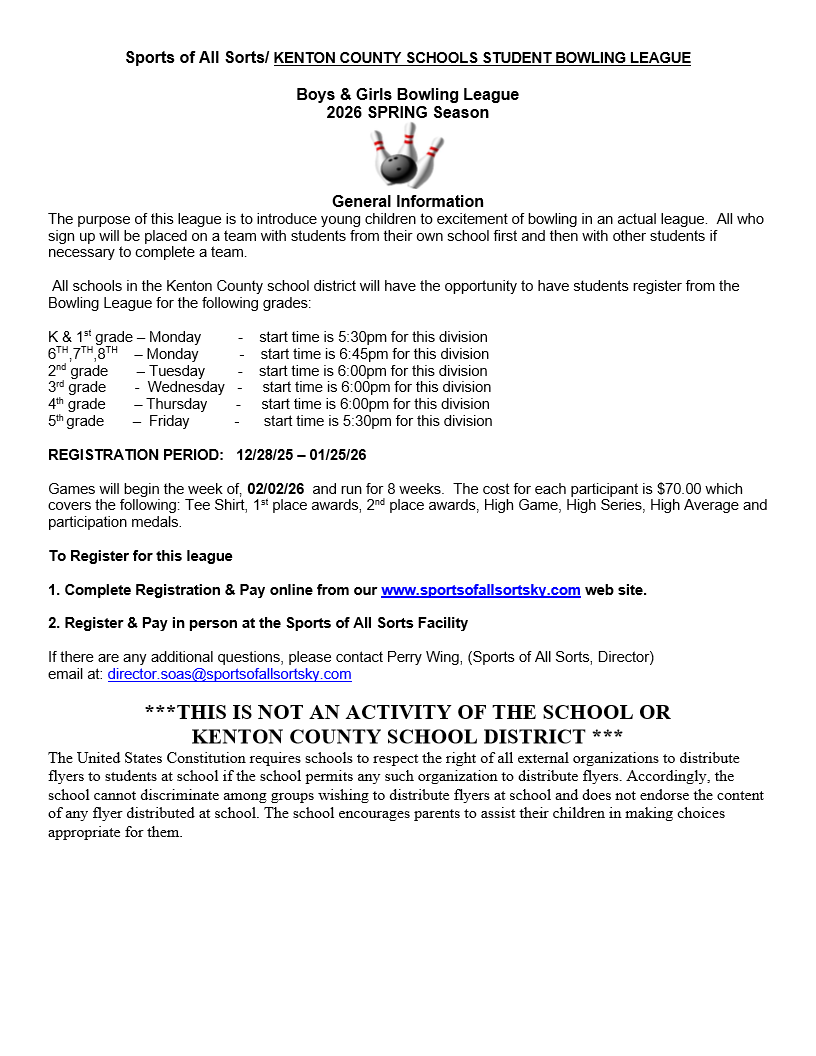 Kenton County Schools Grade & Middle School Bowling Leagues