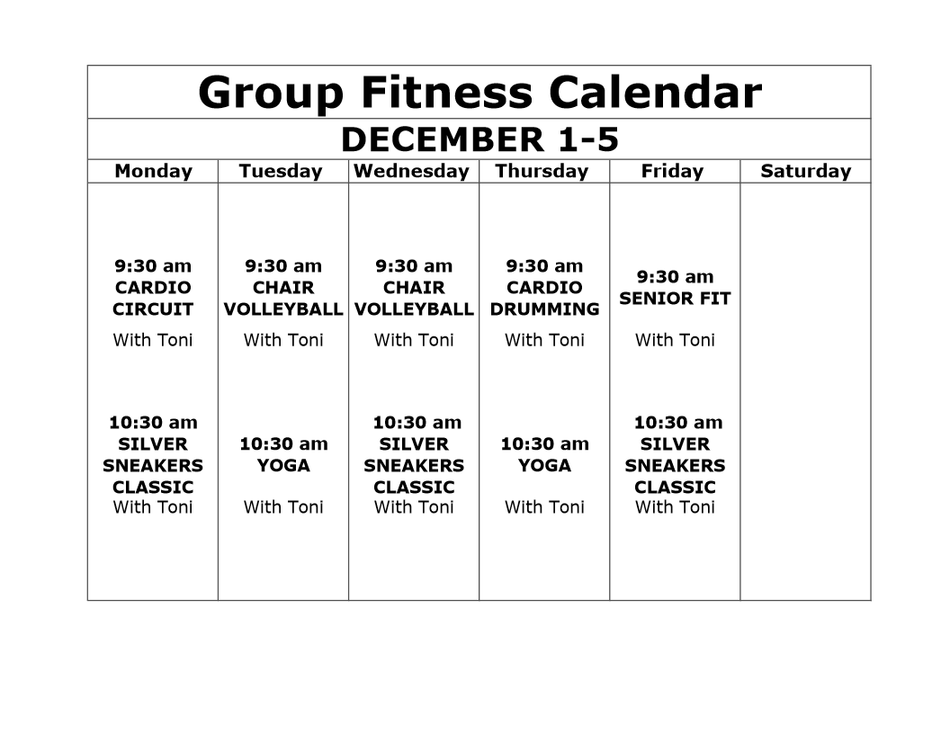 Group Fitness Calendar